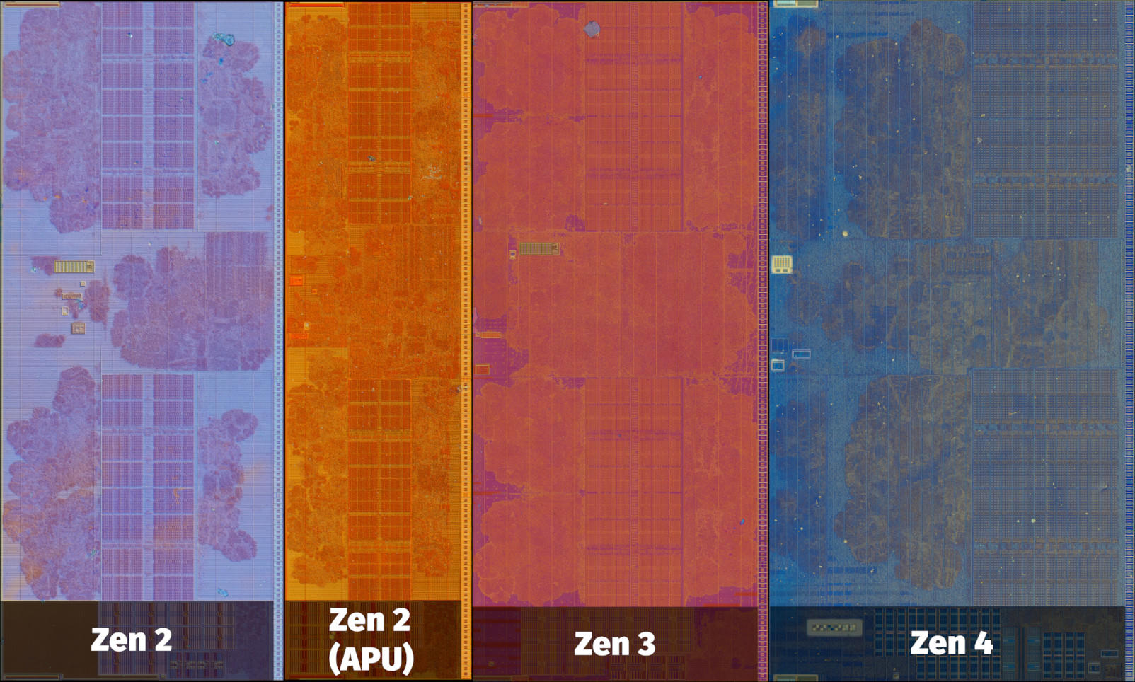 Figure 2. Floating-point/vector blocks from various Zen cores.